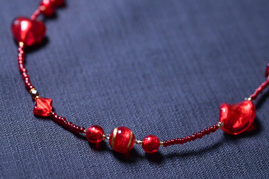 美しい赤色のネックレス ベネチアンガラス