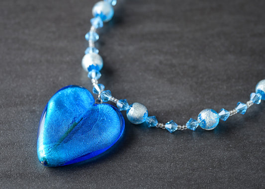 美しいハートが目を惹く 真っ青なハートのネックレス