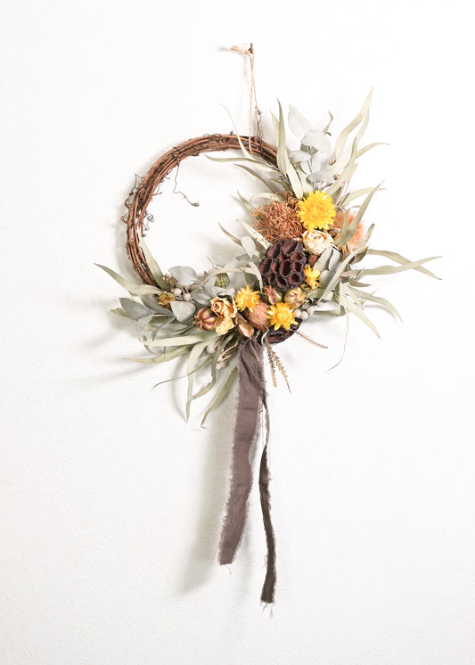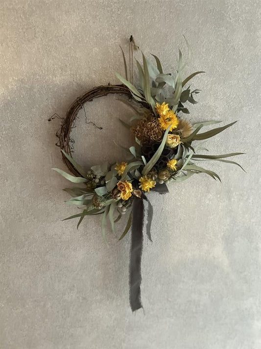 ドライフラワーのハーフリース(イエロー×グリーン)