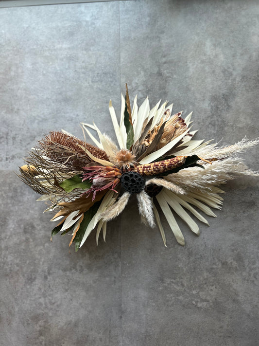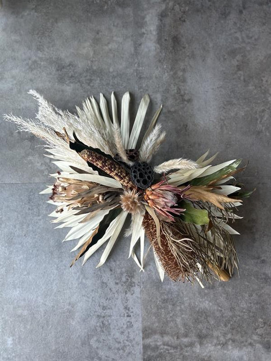 「ドライフラワーの自然美と創造性の融合」 ドライフラワーの自然な形や色を最大限に活かし、シンプルでありながら洗練された色合わせやデザインを追求しています。